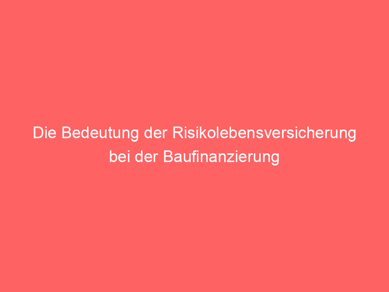 Die Risikolebensversicherung spielt eine wichtige Rolle bei der Baufinanzierung. Sie bietet den Kreditgebern eine zusätzliche Sicherheit, da im Falle des Todes des Kreditnehmers die Todesfallsumme zur Tilgung des Kredits verwendet werden kann. Dadurch wird sichergestellt, dass die Hinterbliebenen nicht mit der finanziellen Belastung der Kreditraten konfrontiert werden und das Haus oder die Wohnung behalten können.